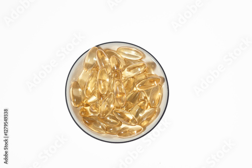 Food supplement oil filled fish oil, omega 3, omega 6, omega 9, vitamin A, vitamin D, vitamin E