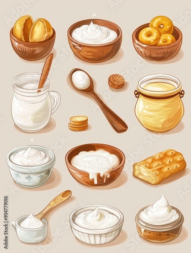 Food Variety with Bread Yogurt Cream