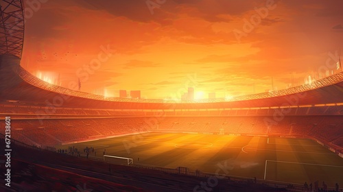 Football ground at sunset with warm colors and a sense of nostalgia, artistic depiction capturing the beauty of the sport and the venue