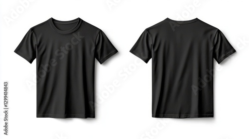 For a mockup of two black short-sleeve t-shirts side by side with a white background
