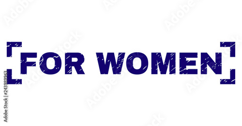 FOR WOMEN text seal print with grunge effect. Text label is placed between corners. Blue vector rubber print of FOR WOMEN with corroded texture.