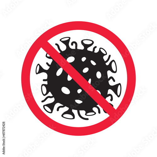 Forbidden Prohibited Warning, caution, attention, restriction label danger. Stop corona virus icon. Forbidden microbe sign. No virus flat sign design. No bactery symbol pictogram. UX UI icon