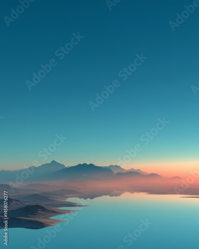 forecast intelligence evolution future subconcious surreal dream opinion A serene landscape featuring majestic mountains reflected in calm waters, illuminated by a soft, colorful sunset sky.