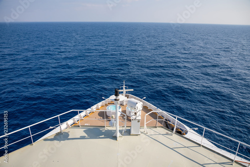 Forecastle of the big white Cruise liner during a cruise to Montenegro