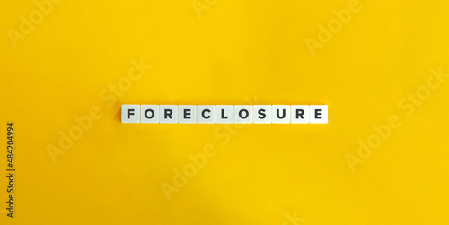 Foreclosure Word and Banner. Block letters on bright orange background. Minimal aesthetics.