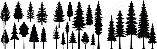 Forest and Conifer Tree Silhouettes – Pine, Douglas Spruce Vector Set for Logo, Badge, and Nature Design on White Background