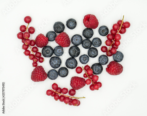 Forest berries top view on white background