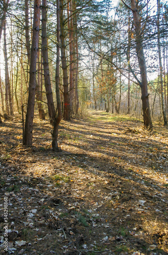 Forest in early spring background. natural environment in Poland. Trees in park.