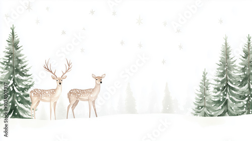 forest in the frost. Winter landscape. Collage of photos of fir trees and deer.