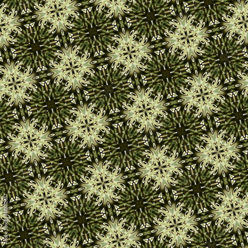 Forest light moss green Ivory color Mandala Flower ornament banner Textured background. Ornate illustration.