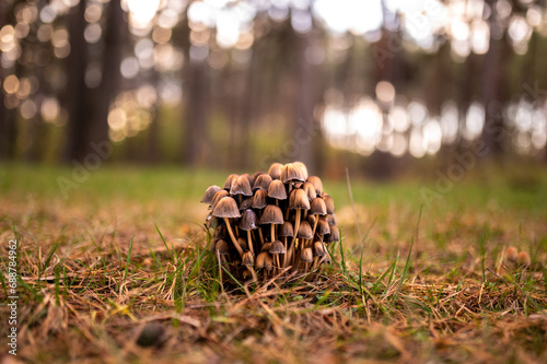 Forest mushrooms in the grass. Gathering mushrooms. Mushroom photo, forest photo, forest mushroom, forest mushroom photo
