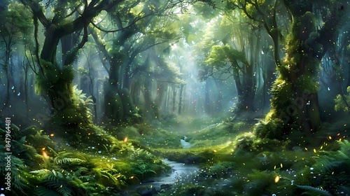 Forest Trail with Sunlight Filtering Through Trees background, Generative Ai