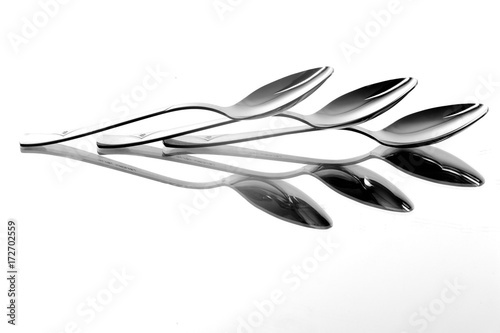 fork and spoon reflection on white background, reflection art