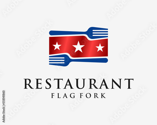 Fork Dining Restaurant Kitchen Flatware Food Star Spark Flag Patriotic American Vector Logo Design