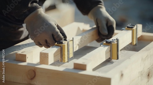 Formwork carpenter assembling wooden molds for concrete pouring. Featuring precision and structural integrity