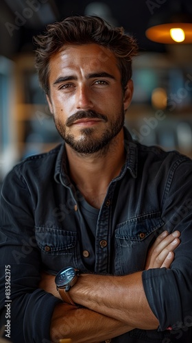 Forward-Thinking Young Professional in Minimalist Office Illuminated by Soft Overhead Light