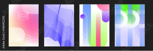 Four abstract designs featuring vibrant colors and unique shapes perfect for backgrounds, posters, branding, and digital art projects.