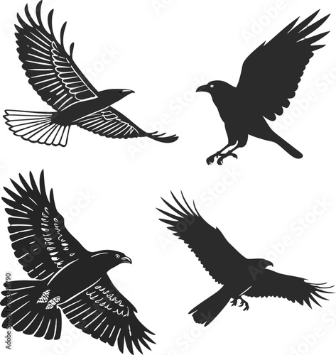 Four birds of prey in flight eagle hawk