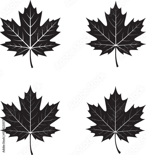 Four Black Maple Leaf Silhouettes on a White Background