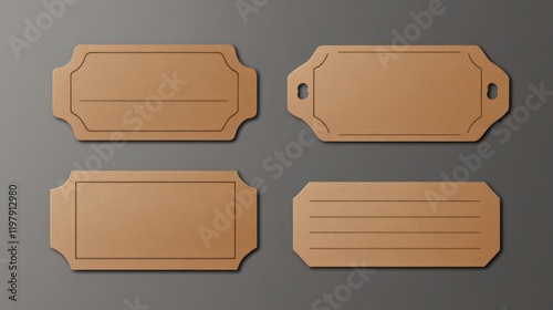 Four blank brown paper tags with different designs, ideal for labeling or gifting.