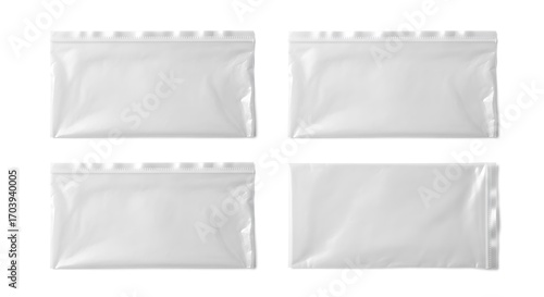 Four clear plastic zipper bags arranged in a grid, showcasing their smooth surfaces and zip closures against a plain white background.