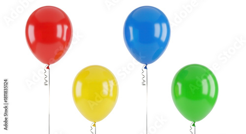 Four colorful balloons isolated on transparent background, party decoration