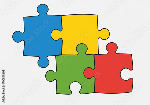 Four colorful puzzle pieces interlocking, representing teamwork and problem-solving