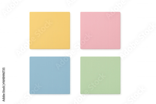 Four colorful sticky notes isolated on a transparent background, ready for customization and integration into various projects