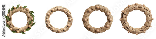 Four decorative wreaths on a white isolated background.