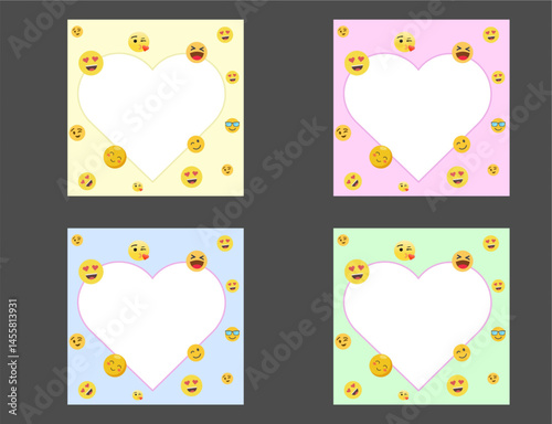 four different color background wallpapers, poster greeting, name card gift card templates heart shaped inside