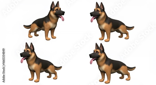Four german shepherd dog poses digital illustration