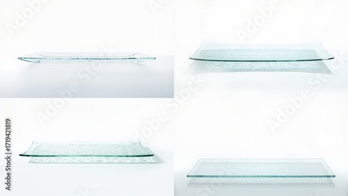Four glass trays with different angles and sizes background motion elements frame colorful style layers composition creative scene gesture expression emotion cartoonish movement design