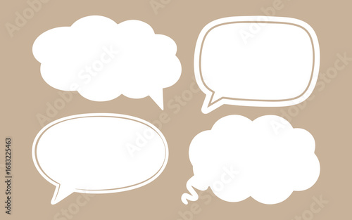 Four hand drawn white speech bubbles on a neutral background