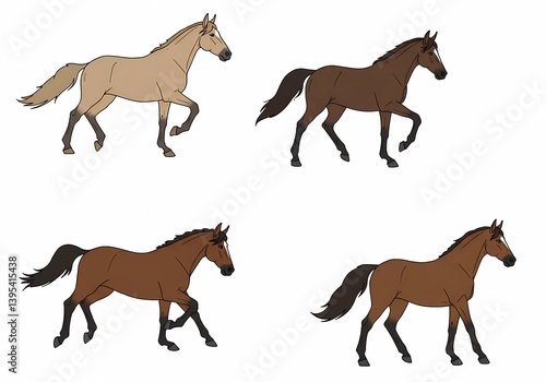 Four Horse Illustrations: Diverse Coat Colors and Gaits