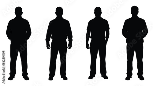 Four men standing in a row depicted as a dark outline silhouette