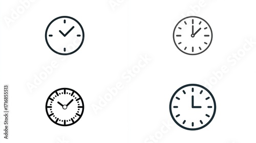Four minimalist clock icons showing different times on white background