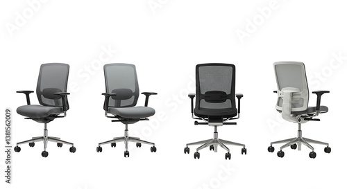 Four Modern Office Chairs with Mesh Backs and Adjustable Features
