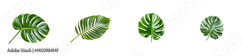 Four Monstera deliciosa leaves, vibrant green. cut out transparent