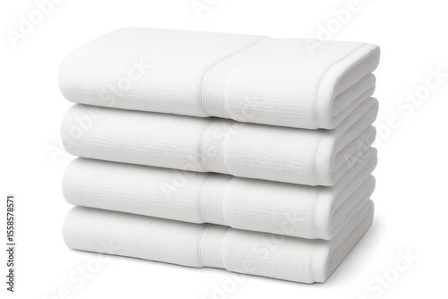 Four neatly folded white bath towels isolated on a transparent background, ready for use in a spa, hotel, or home bathroom