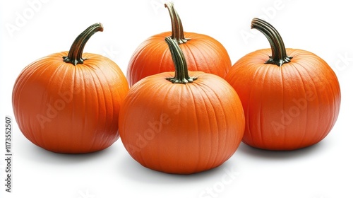 Four orange pumpkins are arranged in a row