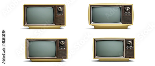 Four retro televisions arranged against a plain white background depicting nostalgia and classic technology