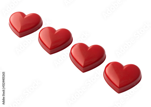 Four Shiny Red Hearts – 3D Love and Romance Symbol on White Background