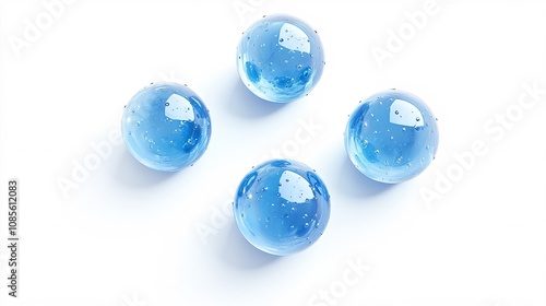 Four Transparent Blue Gel Balls with Air Bubbles Isolated on a Clean White Background, Ideal for Spa, Relaxation, or Cleaning Themes in Stock Photography