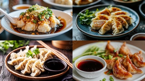 Four types of dumplings steamed, pan-fried, boiled, and fried.