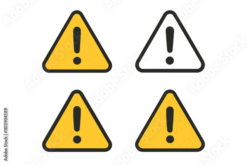 Four variations of triangular warning signs with exclamation mark symbol for caution and danger alerts