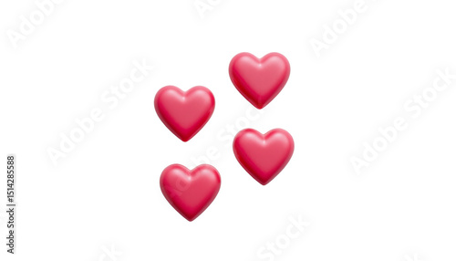 Four Vibrant Red Hearts Symbolizing Love and Affection in a Playful and Whimsical Composition