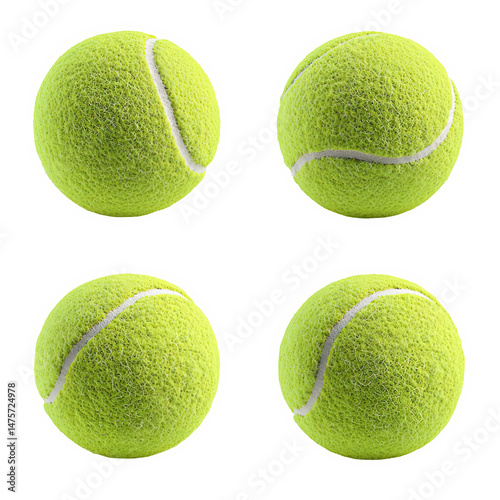 Four Vibrant Tennis Balls with Textured Surface on a Transparent Background