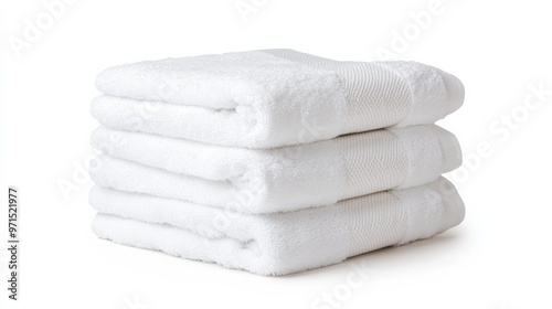 Four White Towels Stacked, Isolated on White Background, Soft, Fluffy, Clean ,towel, stack