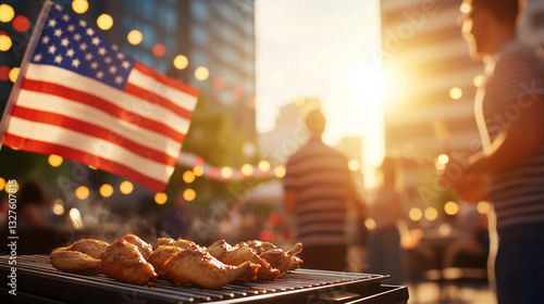 Fourth of July BBQ Celebration with Coworkers in Office Courtyard
