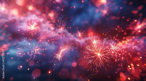 Fourth of July Fireworks: Explosive fireworks display lighting up the sky for Independence Day.